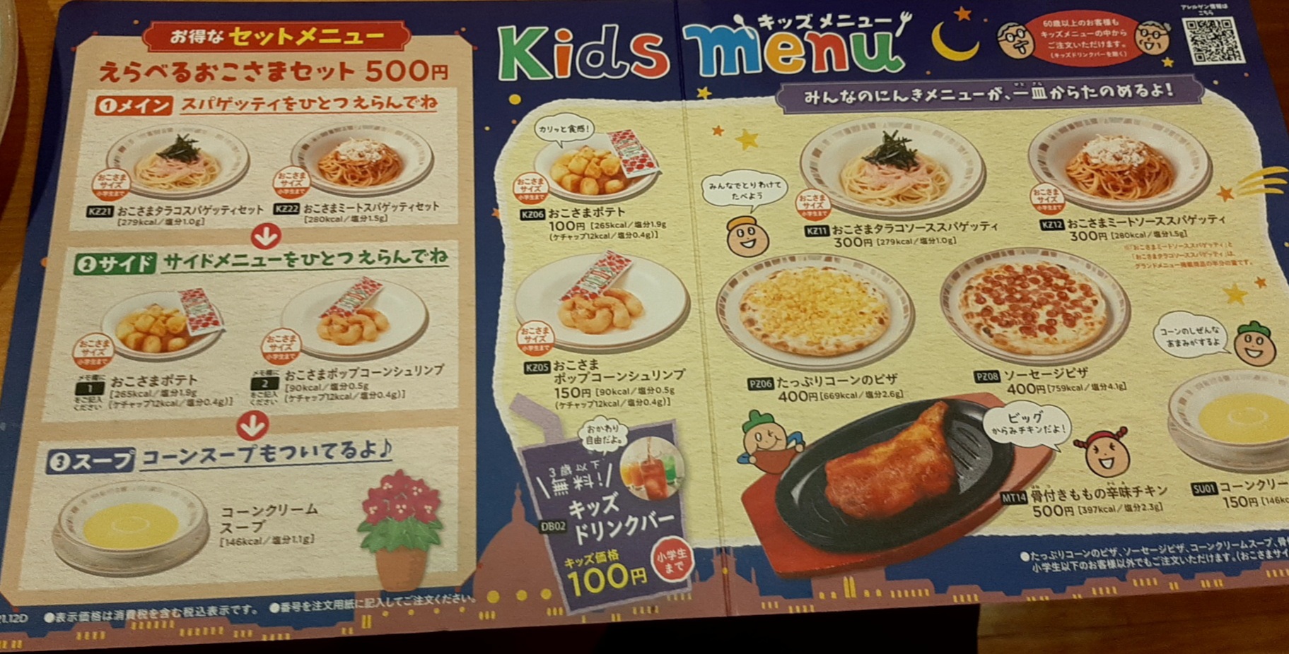 食事を終えてから何の気なしにキッズメニューを見て大発見!をしてしまいました。