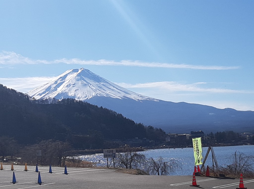 河口湖畔からもパチリ。今日は本当に良いお天気で富士山も映えます。