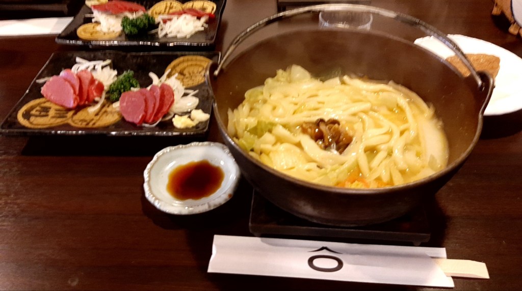 午前中はBRAIN DUMP の続き、ランチは山梨県の郷土料理、ほうとう鍋を「ほうとう不動 河口湖北本店」で頂きました。大きな鍋のほうとうと馬刺、稲荷寿司(合計2,640円)でボリューム満点!です。