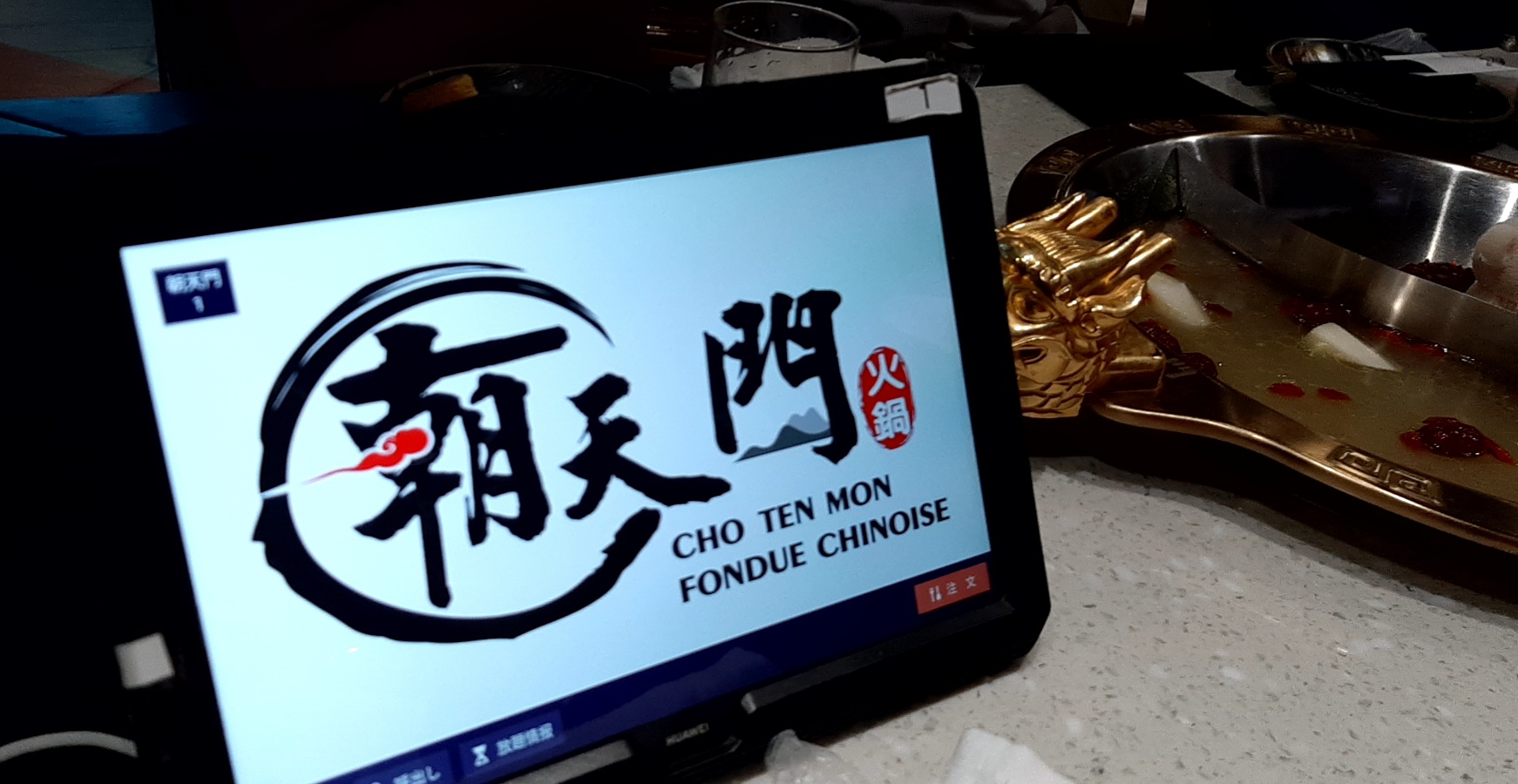夜は火鍋料理の「朝天門(ちょうてんもん)」。唐辛子が大量に入っており、激辛でした。健康美容 火鍋専門店のようです。