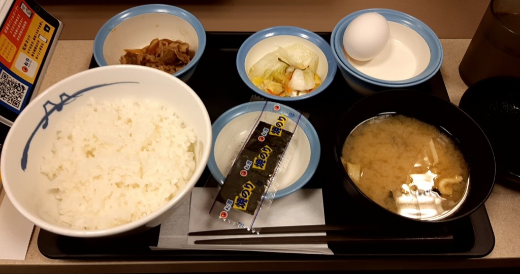 朝食は牛皿のセットにしましたが、これで360円とはコスパ良いです。