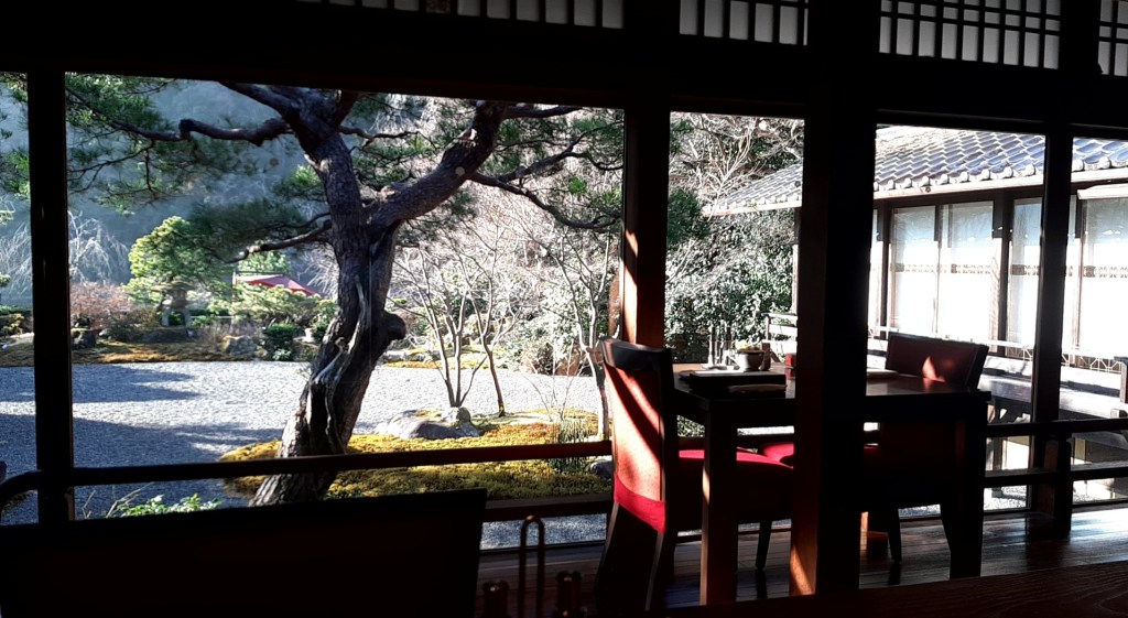 翌朝は8時から朝食を予約していました。「京 翠嵐」という1階にあるレストランで頂きます。ここは昔、川崎重工の創始者である川崎正蔵の「延命閣」と名付けられた別荘でした。
