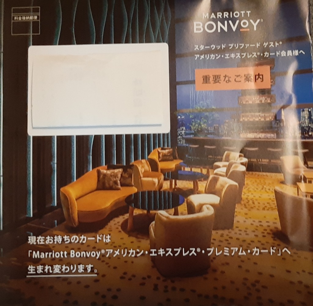MARRIOTT BONVOY からの重要なご案内という郵便物が送られてきました。SPG AMEX を持っている人には順次送られてくるようです。