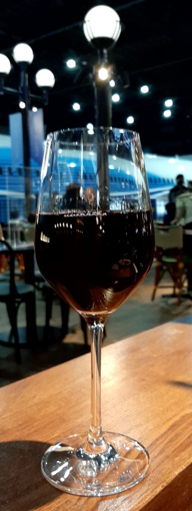ドリンクのおかわり券があるので、時間の許す限り何杯でもいけます。近くのテーブルで赤ワインを美味しそうに飲んでいるシニアカップルがいたので、トラさんも2杯目は赤ワインにしました。
