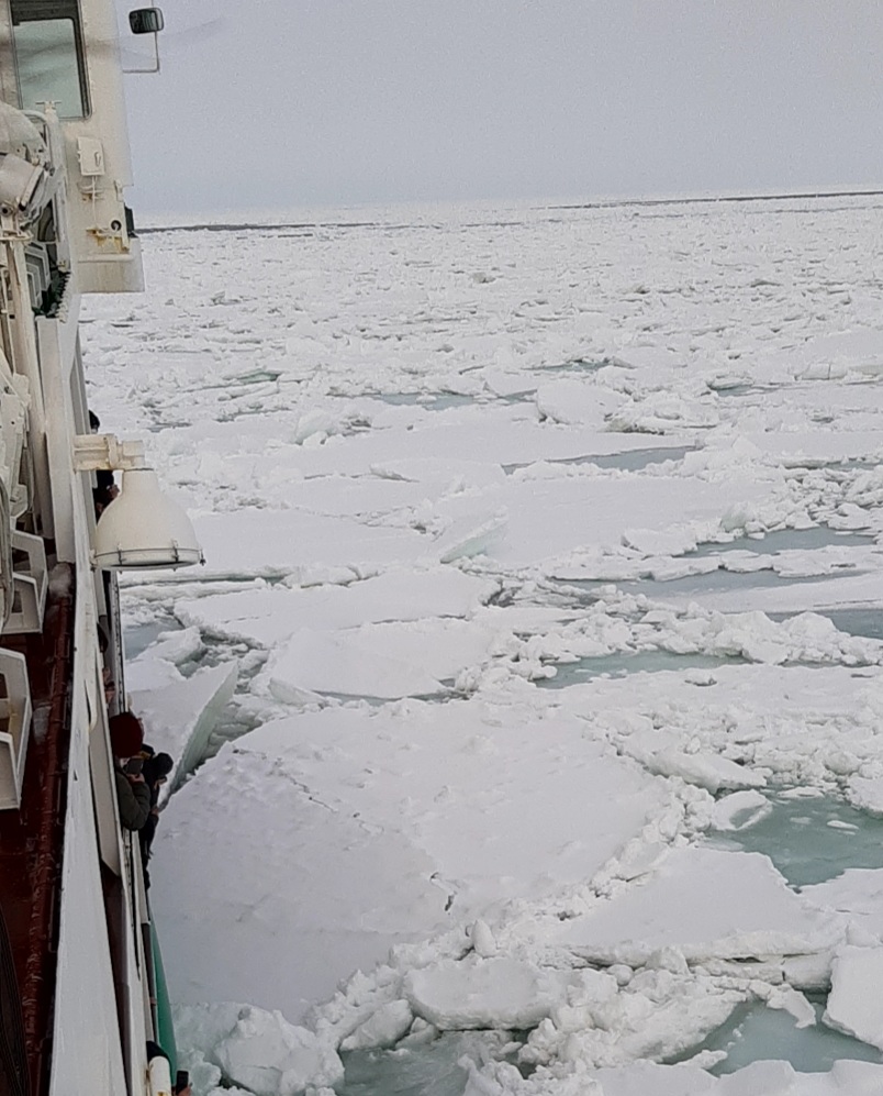 出航してしばらくすると速度が遅くなり船は流氷を粉砕しながら進みます。