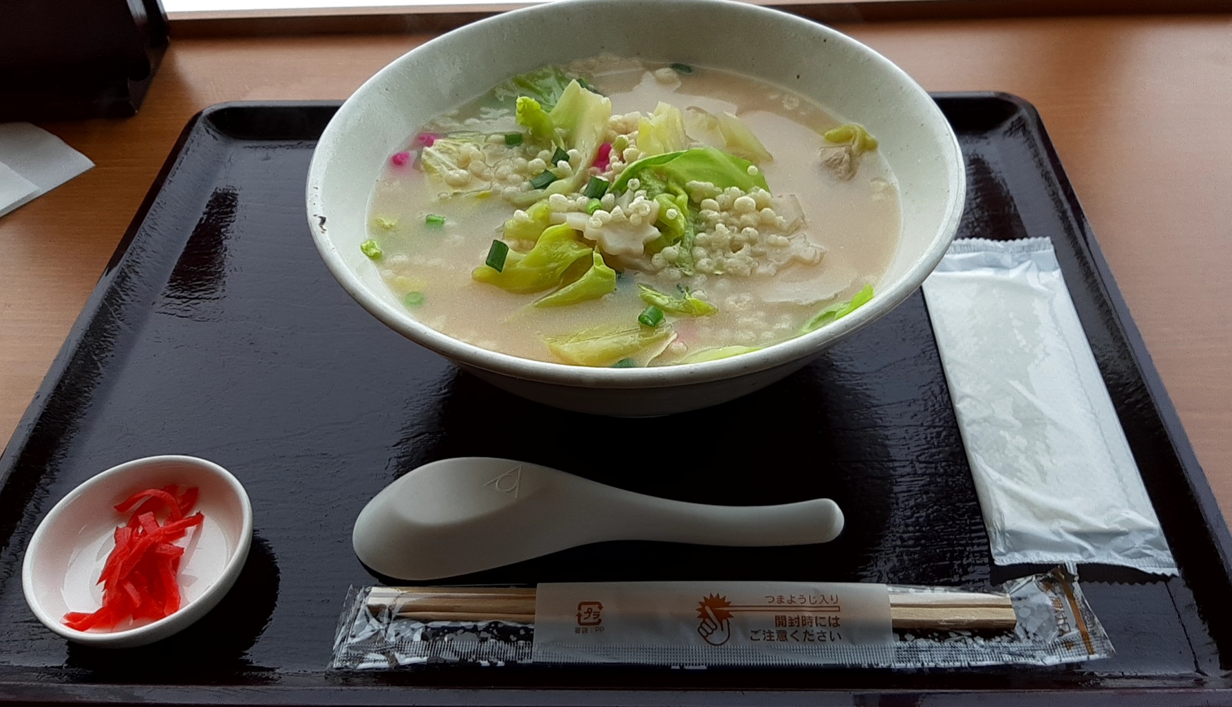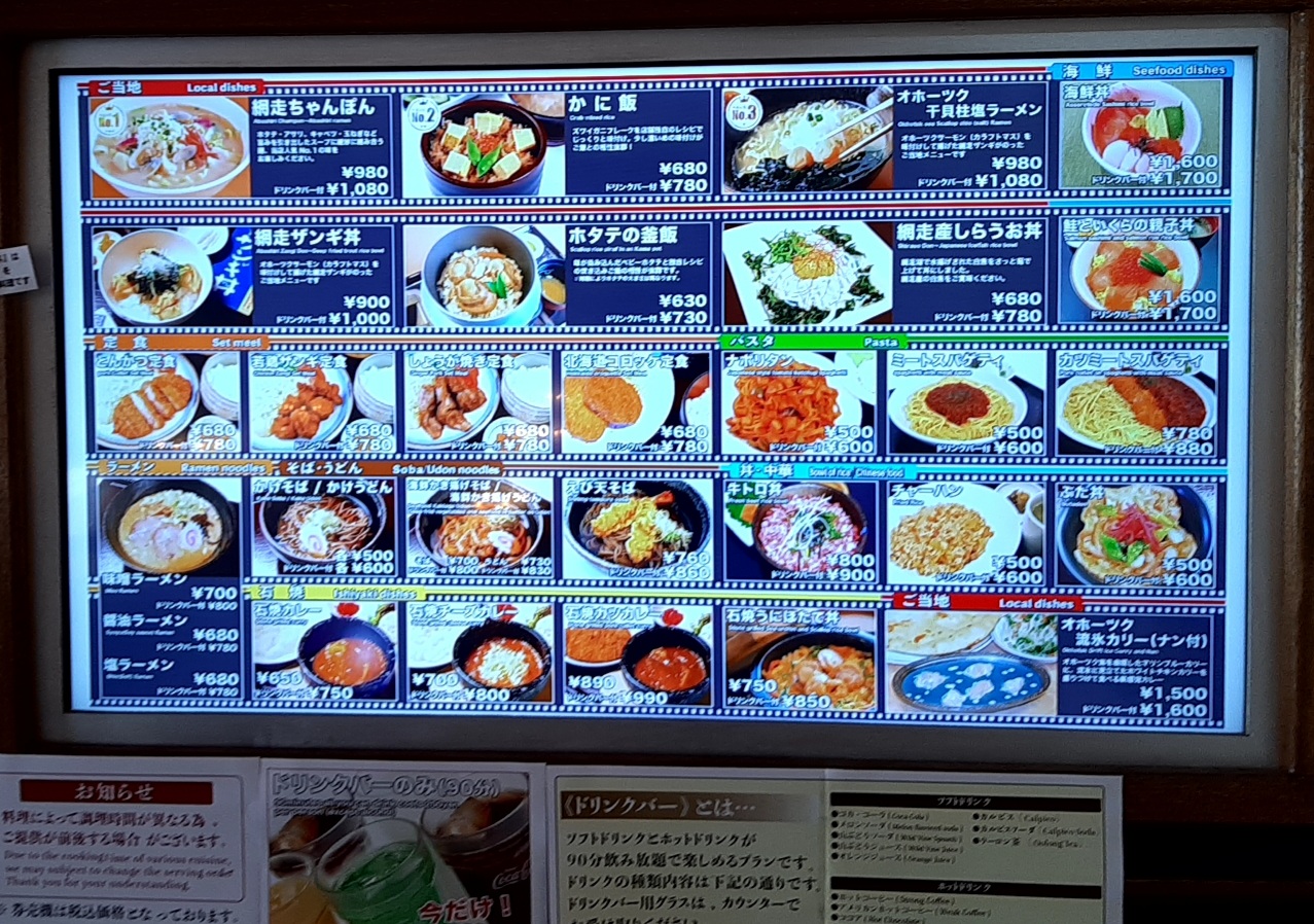 下船してからターミナルの2階にあるフードコート「キネマ館」でトラさんは「網走ちゃんぽん」(950円)、カウちゃんは「ホタテの釜飯」(630円)を頂きました。