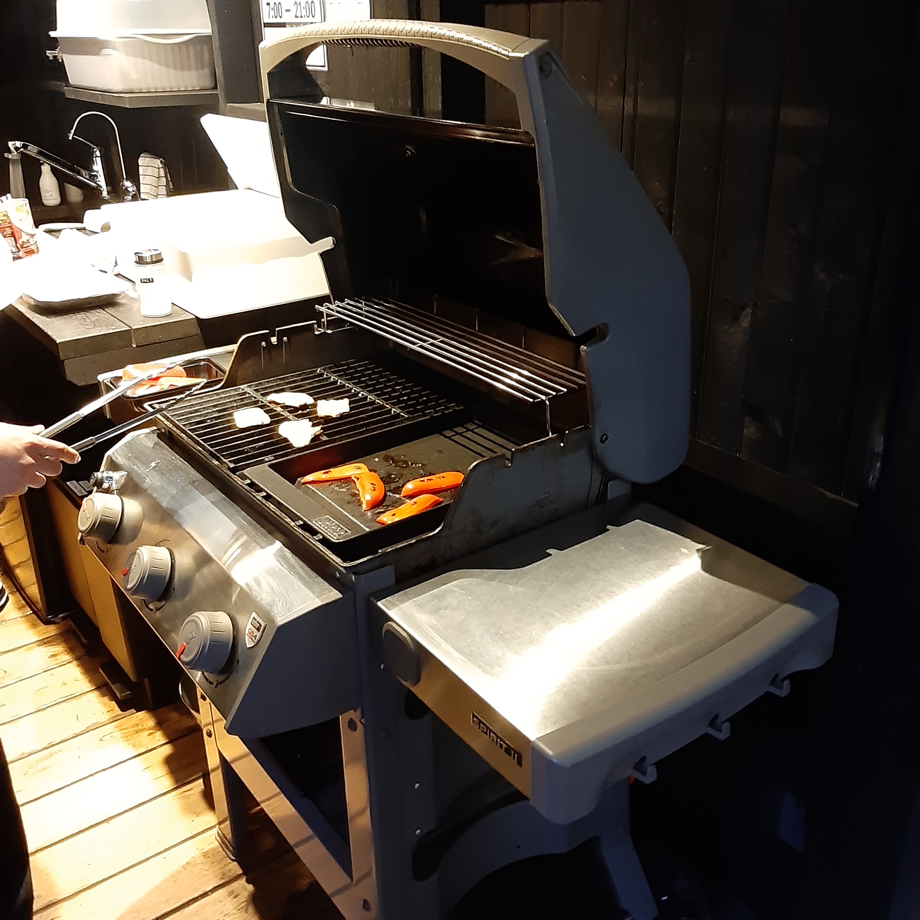 バーベキューの夕食の前にトラさんは野天檜風呂を楽しみました。