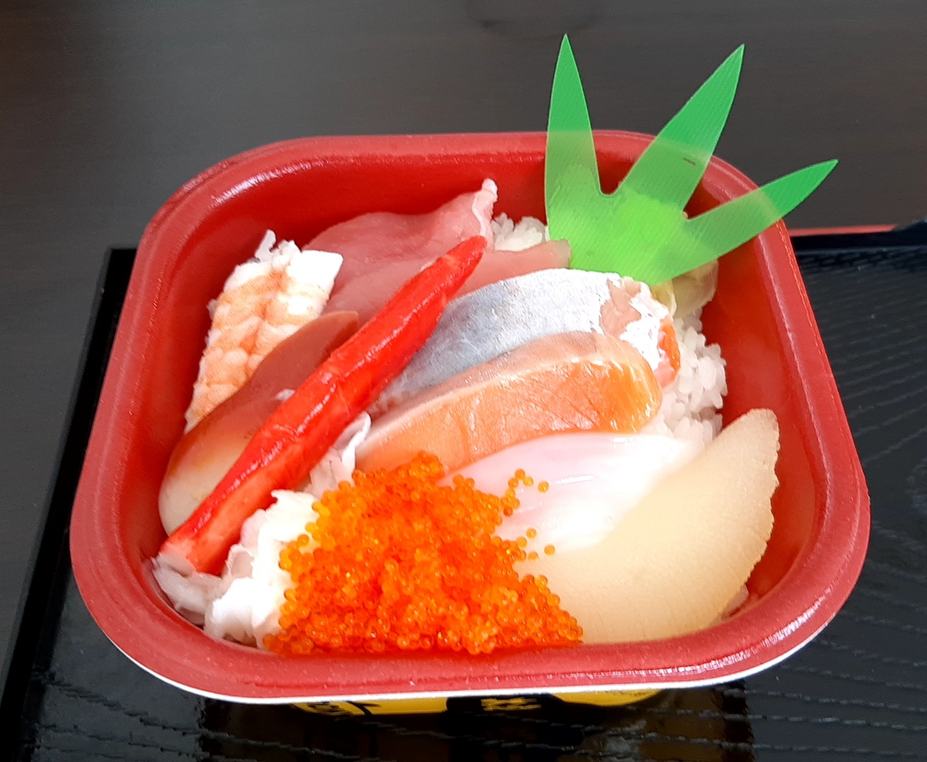 池間島を一周し、池間大橋の手前にある大漁丼家でランチを摂りました。トラさんは「大漁丼」(550円)、カウちゃんは「焼きサーモンとえんがわ丼」(550円)を注文しました。