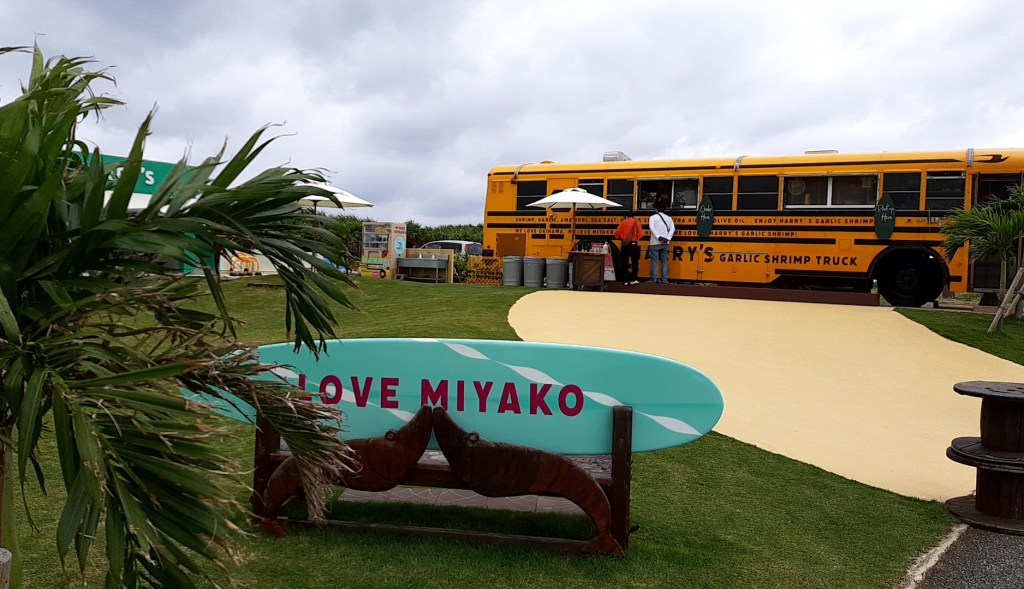 池間大橋から宮古島に戻った後は西平安名崎へ行きました。アメリカのスクールバスを改造したお洒落なお店「HARRY’S」があります。