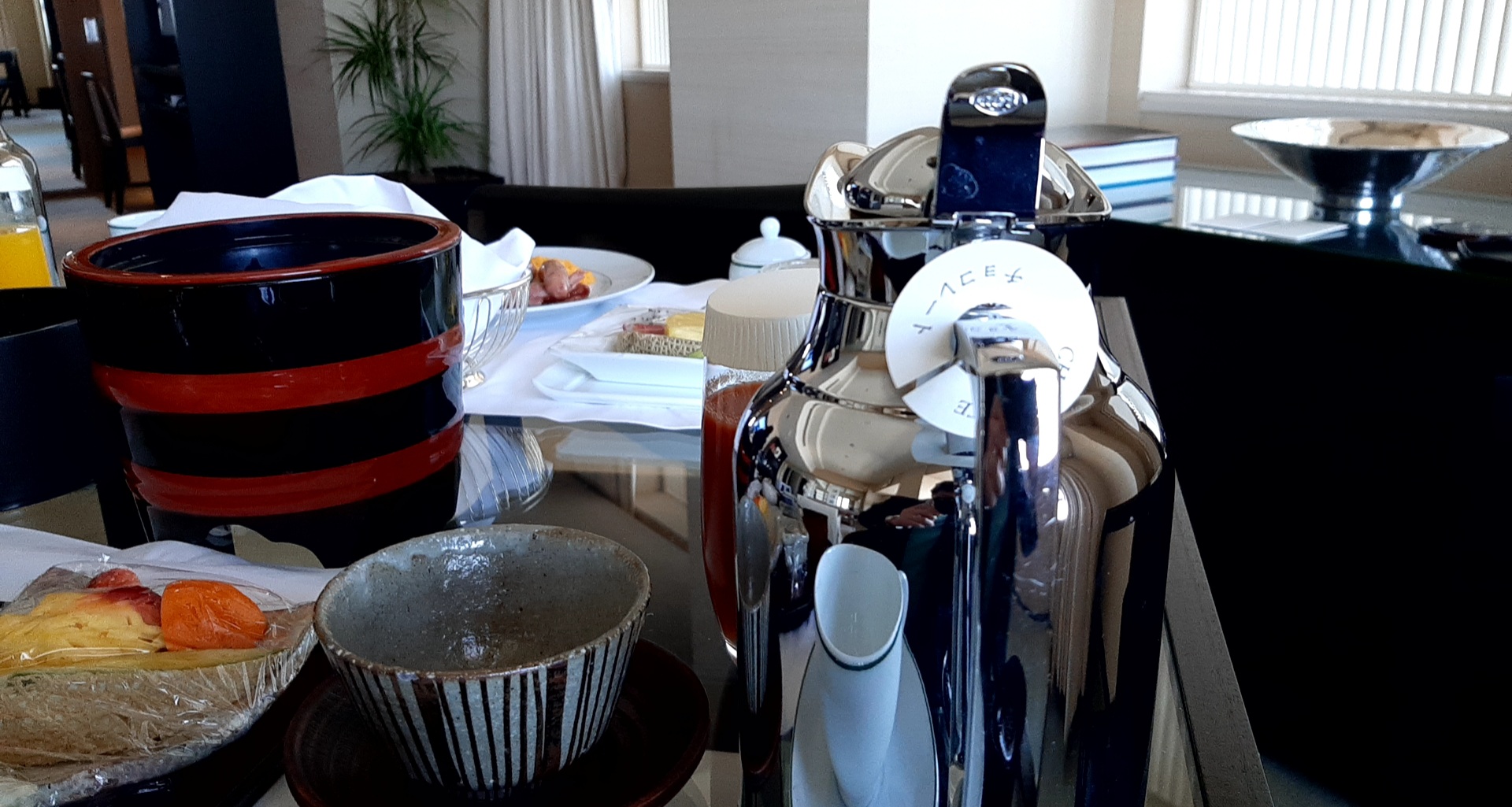 コロナ禍で朝食はルームサービスになるとのことです。お部屋にメニューがあるので、選んでルームサービスに連絡をして欲しいとのことです。和食は数量に限りがあるので、早めに連絡して頂く方が良いとのことでした。