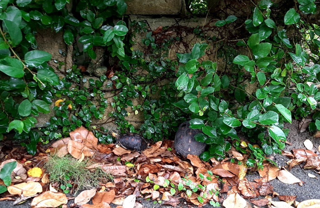 途中、集落内の道端で亀の親子を見つけます。天然記念物のヤエヤマセマルハコガメのようです。