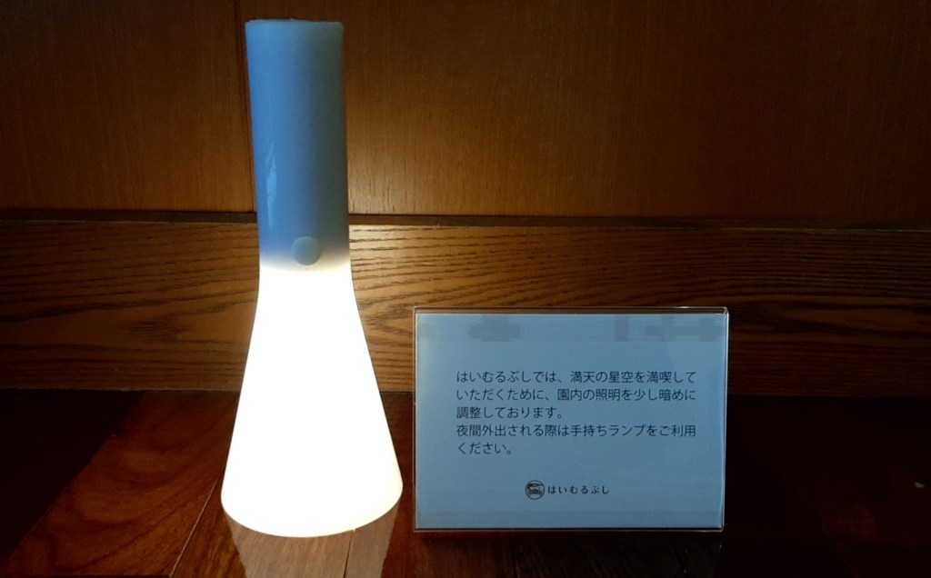 はいむるぶしでは、満天の星空を満喫していただくために、園内の照明を少し暗く調整しているそうです。そのために手持ちランプが各部屋に常備されています。