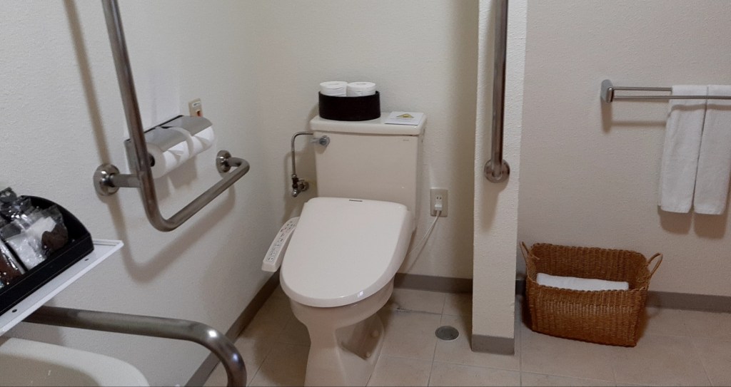 トラさん達が泊まったお部屋は、バリアフリータイプでお風呂やトイレ周りはいたる所に手すりがついていました。