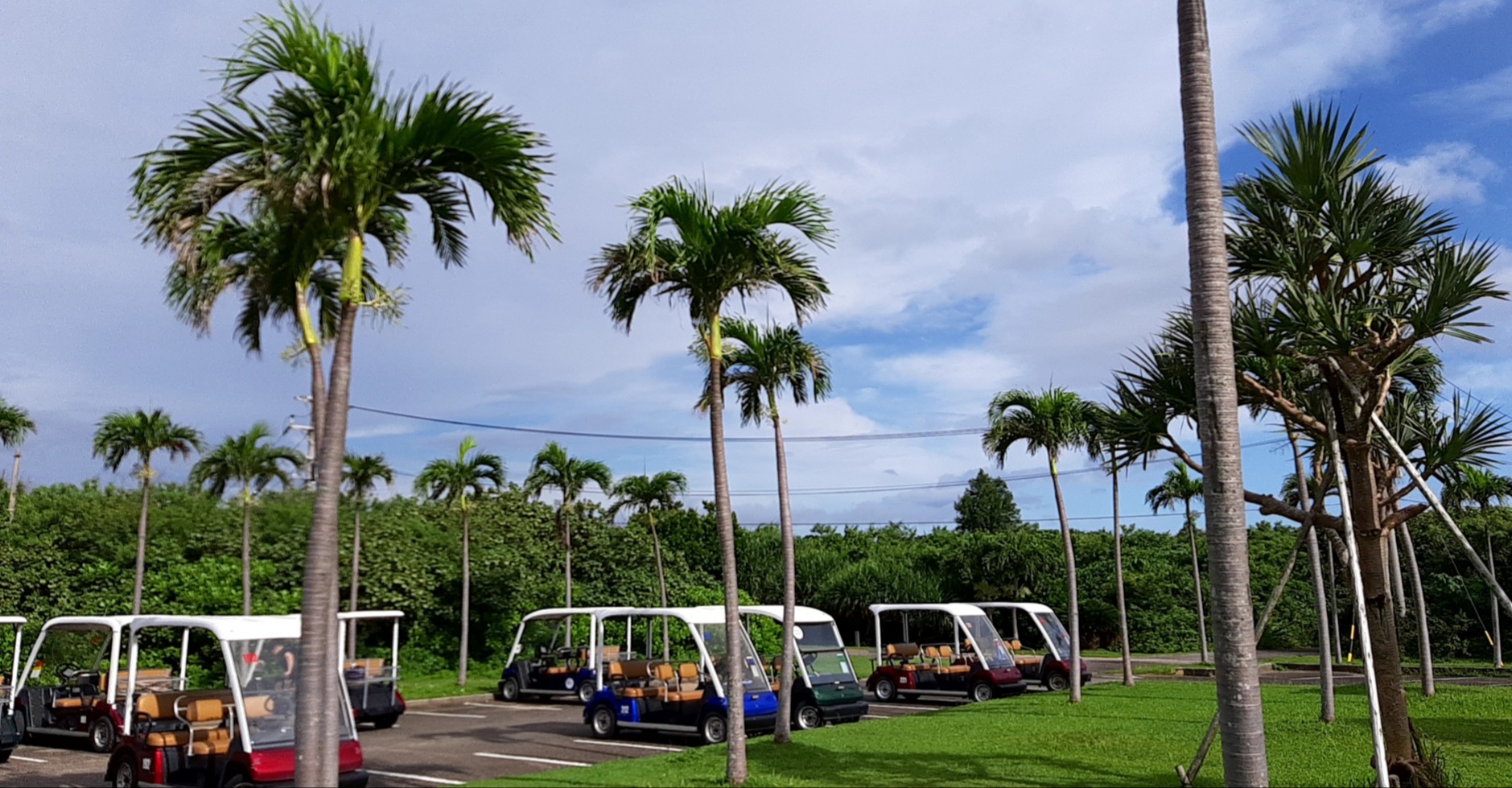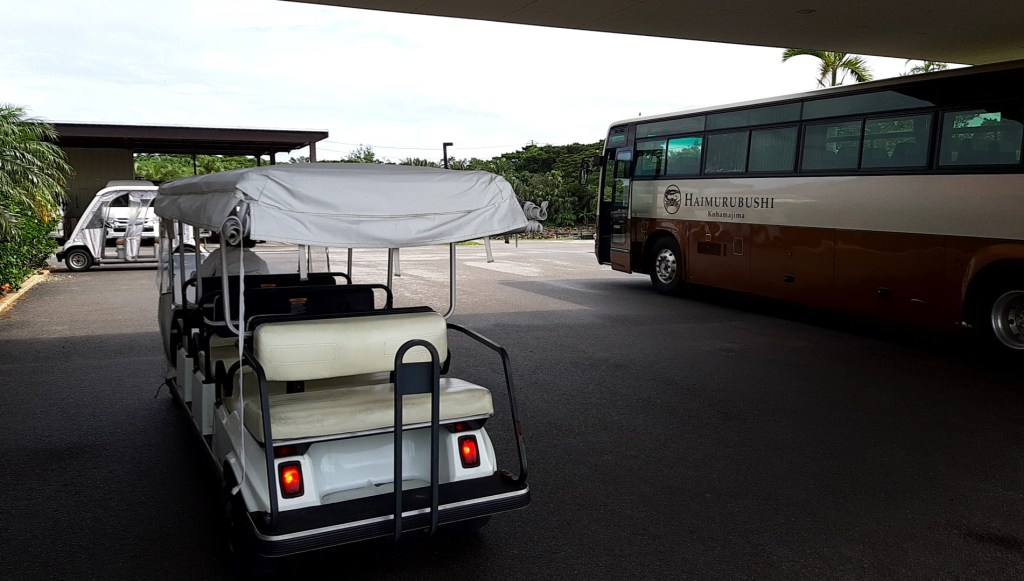 食後は定期的に出ているビーチまでの送迎カートで送って頂きました。コテージに泊まると専有のカートが付くので、好きな時間にビーチへ行くことができます。