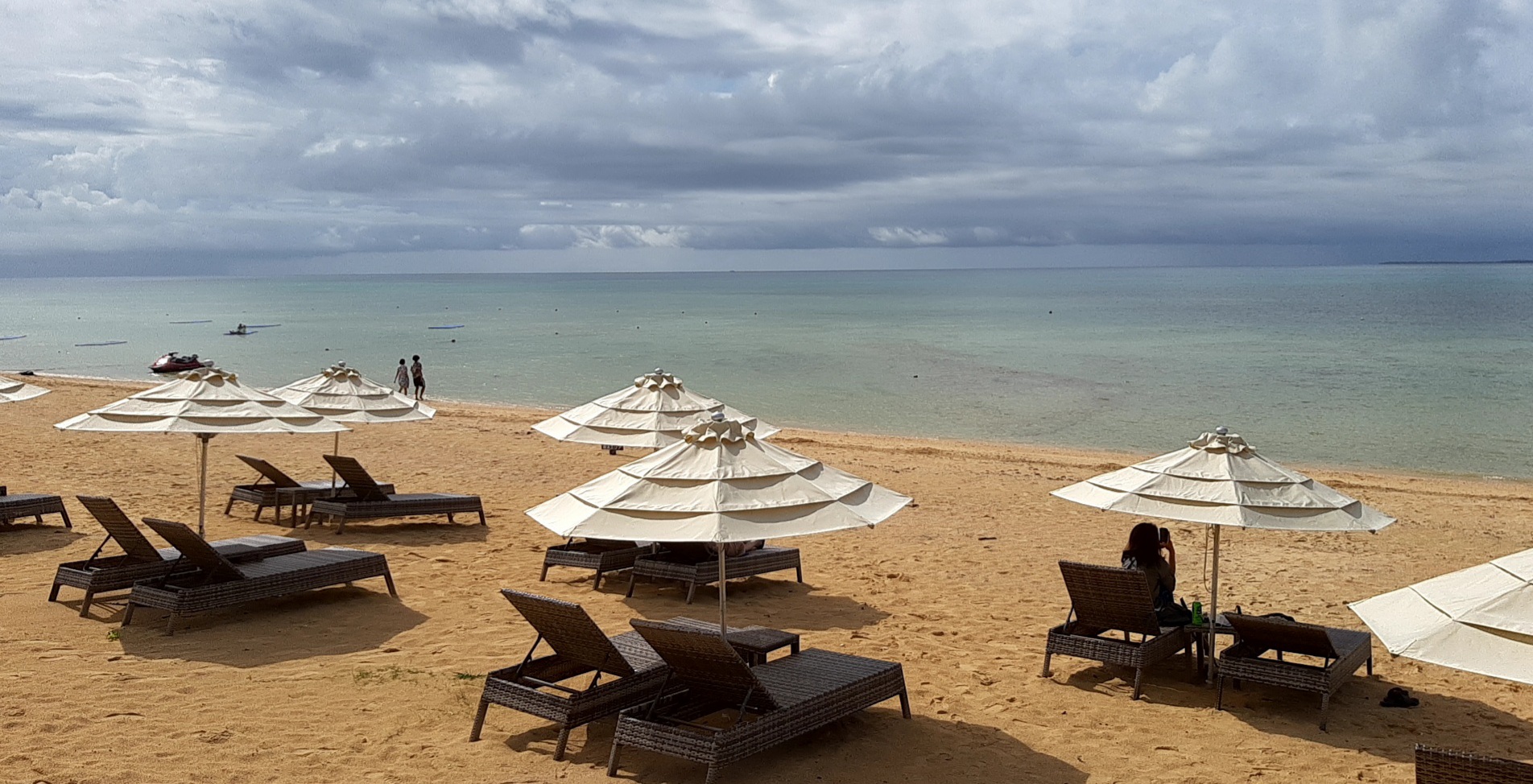 ビーチに行った時は少しだけ晴れてくれました。タオルは無料で借りることができます。パラソル付きのビーチチェアも無料で借りれました。