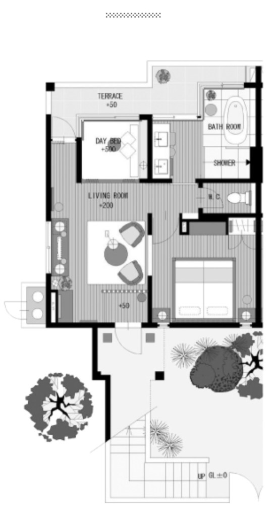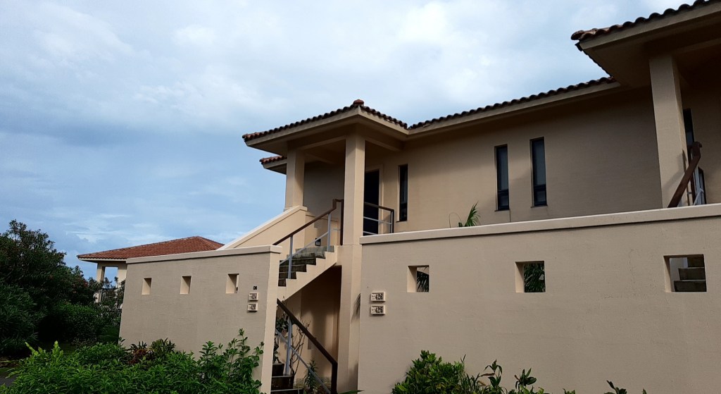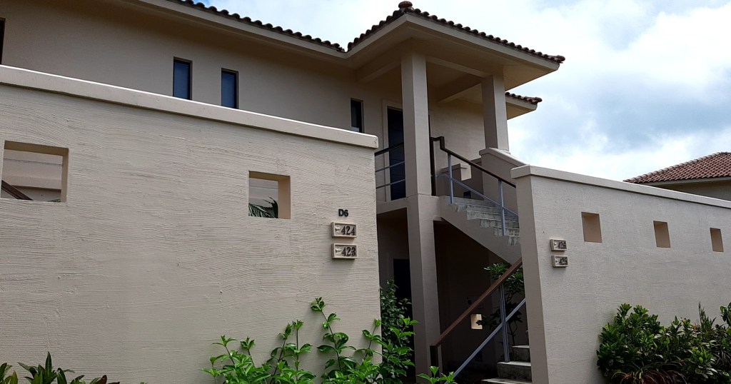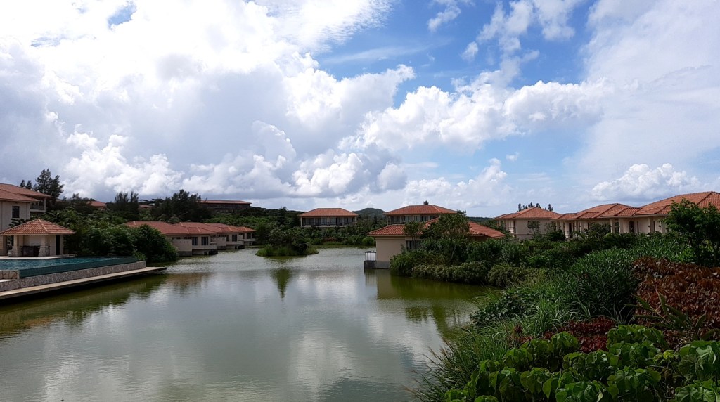 敷地の真ん中にラグーン(礁湖)があり、それを囲むようにしてヴィラが建っています。ヴィラは2階建4戸が標準のようです。