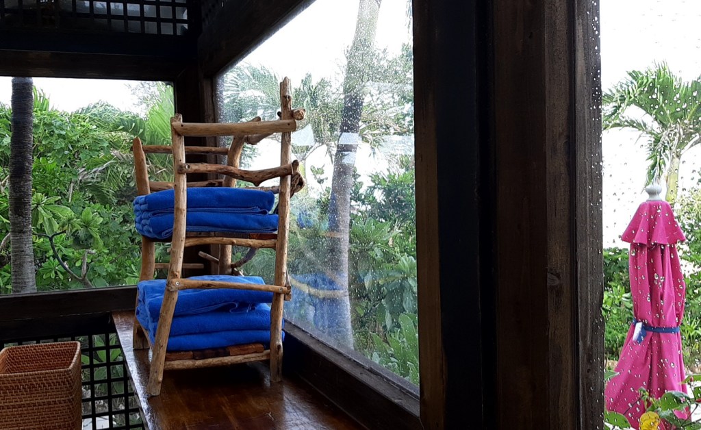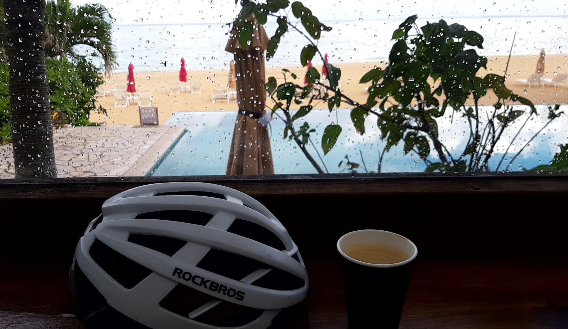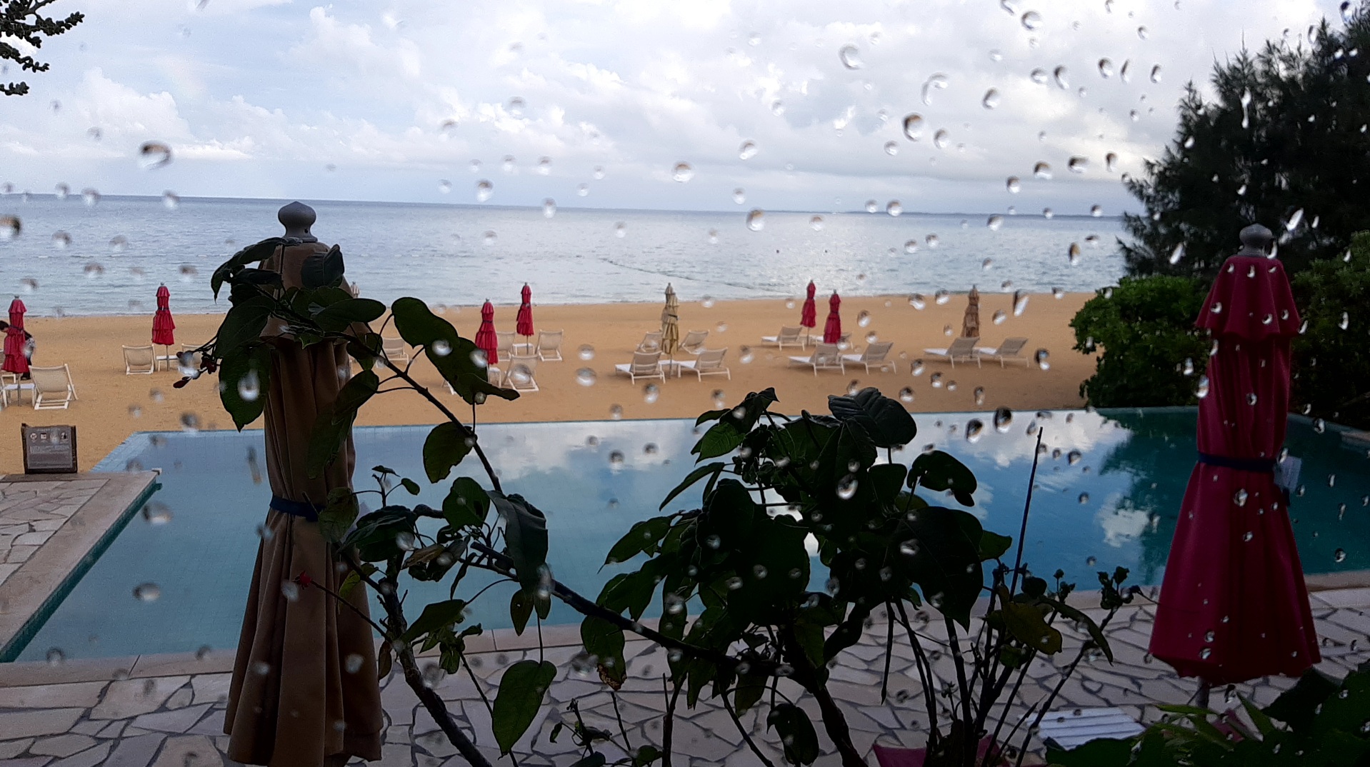 無料のコーヒーを飲みながら本を読んでいると急にスコールが降ってきて止みました。