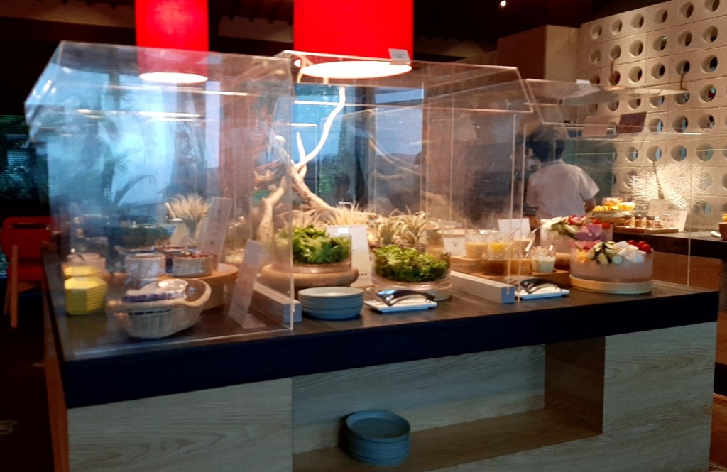 翌日の朝食は受付やロビーがある建物の横にある「Ooli Ooli(オーリオーリ)」で頂きます。ビュッフェスタイルですが、密を避けるために完全予約制でした。