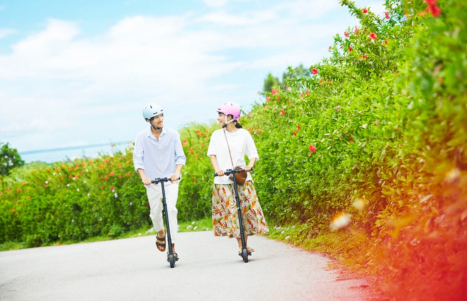 ビーチまでは結構距離があるので、電動キックボードで移動しました。しかし、トラさんのキックボードは十分に充電がされていなかったので、途中で置いてきてしまいました。