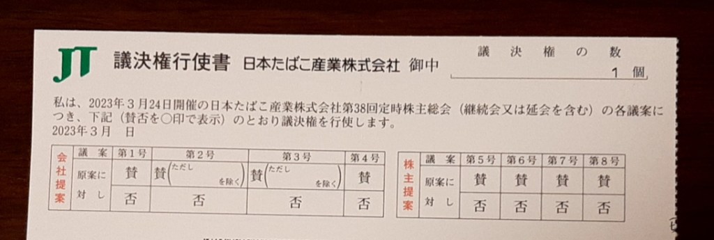 何だろう?と不思議に感じて提案内容を見てみると、株主提案は賛成の方が良いように感じました。
