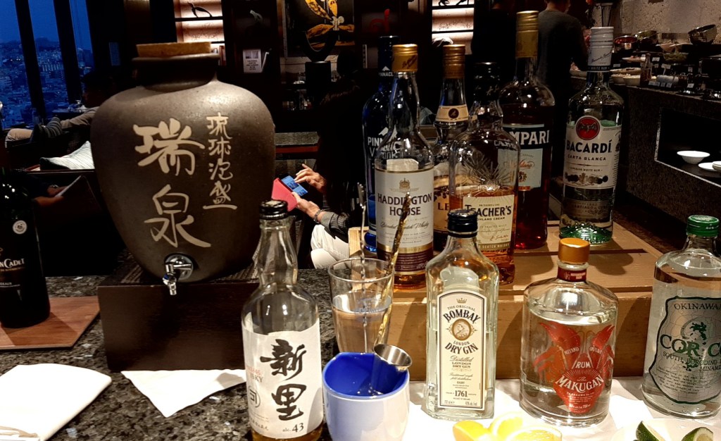 ここでもスパークリングワイン、オリオンビール、沖縄ウイスキー「新里」、琉球泡盛「瑞泉」をグビグビ頂きました。