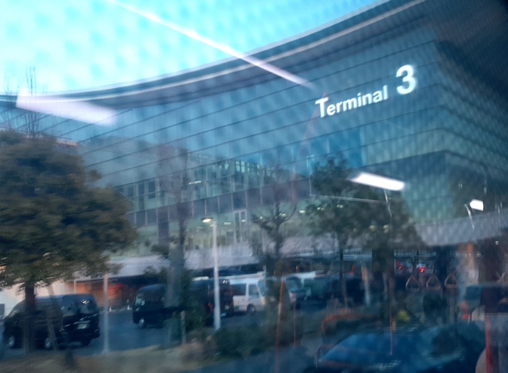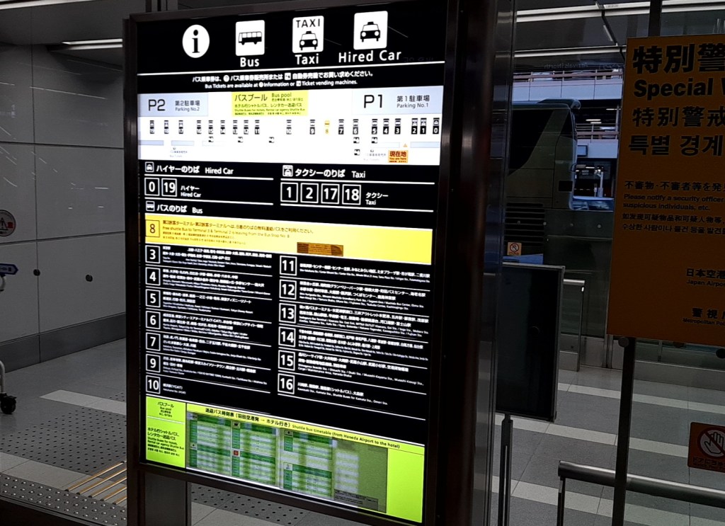 この後、羽田空港の第3ターミナルへ無料シャトルバスで向かいます。8番乗り場が循環バスの発着場所です。