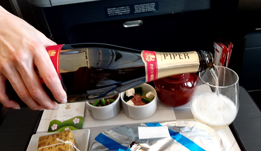 飛行機に搭乗してからは食前酒にシャンパンを頂きます。