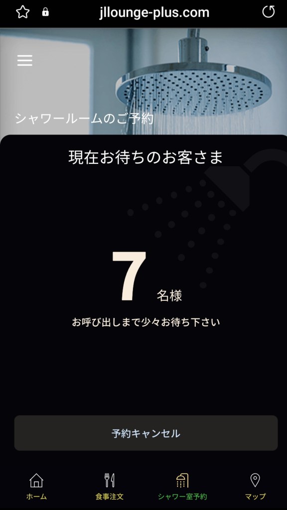 5分どころか1時間近くも過ぎていたので、もうキャンセルされたと思い、改めてシャワールームを予約しました。ところが、0名待ちで受付まで来て下さいとのメッセージが出ました。予約が残っていたようです。