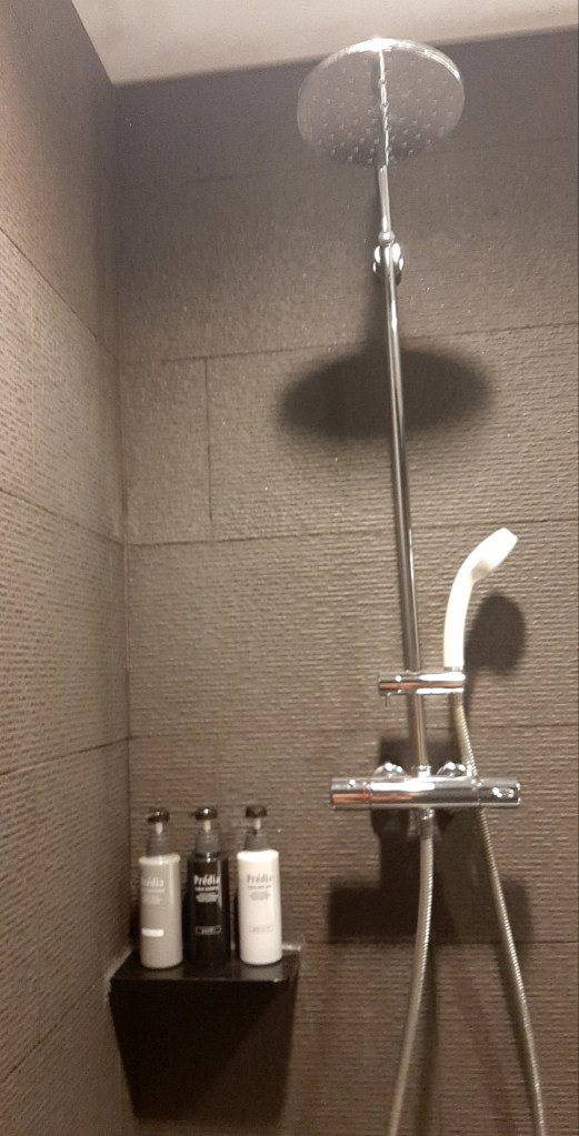 シャワールームの中はトイレ、洗面台、シャワーブースがあります。レセプションの奥にはトイレルームが並んでいましたが、あちらは女性用のシャワールームだったのかも知れません。