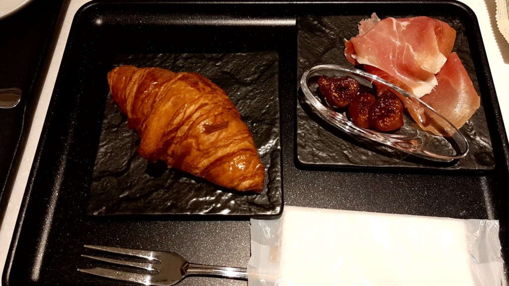 クロワッサンとハモンセラーノプレートいちじく赤ワイン煮添えもオーダーしました。ハモンセラーノはスペイン産の生ハムです。