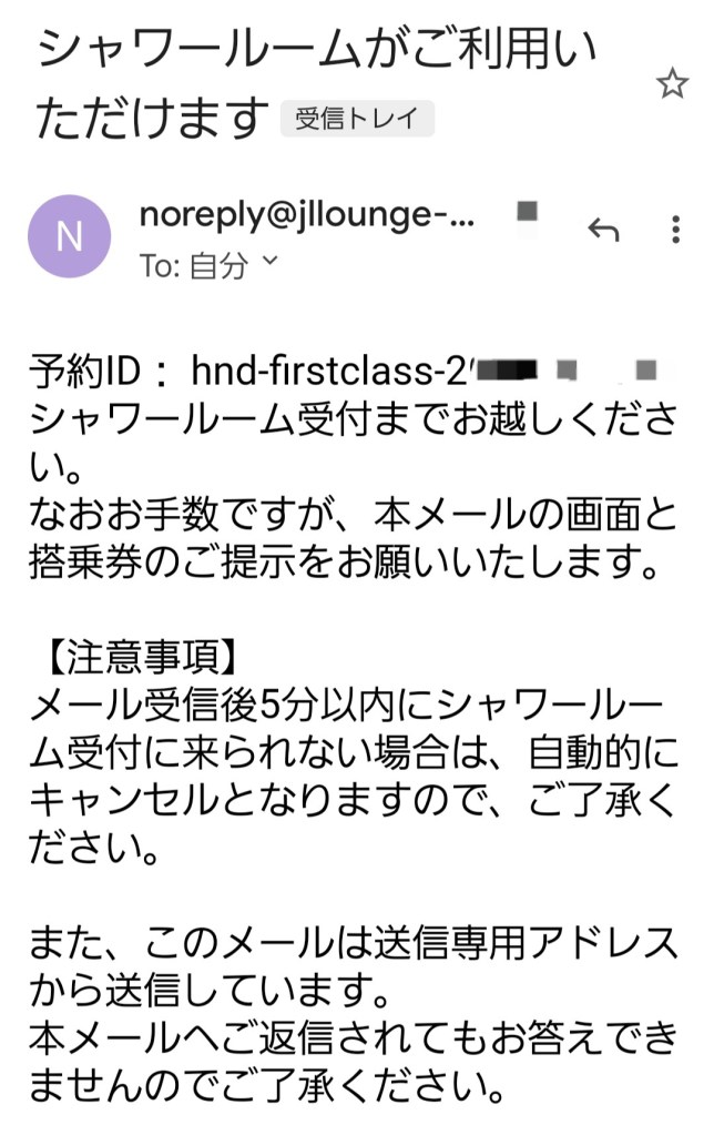 お酒とお料理を楽しんでいる間にシャワールームも空いたかなとメールをチェックすると、とっくの昔に呼び出しメールが来ており、5分以内に受付にいかないと自動的にキャンセルされるというものでした。