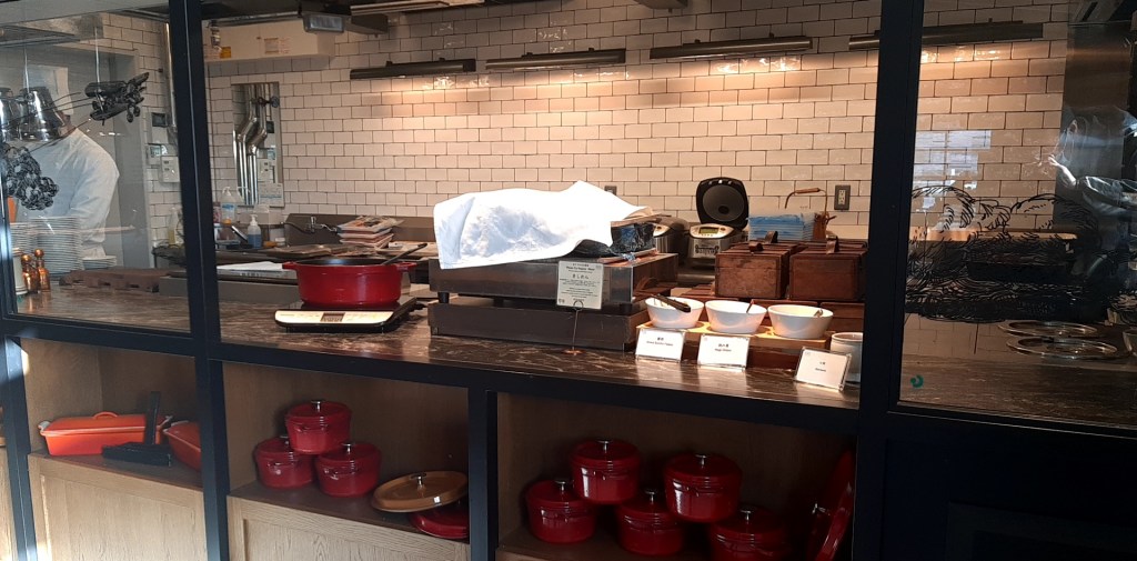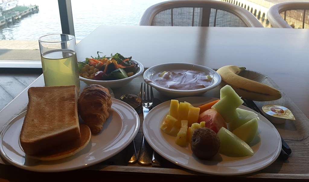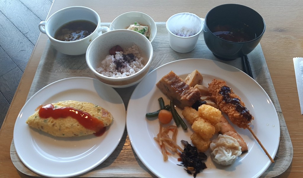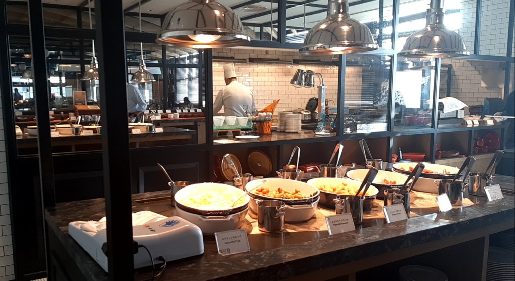 今朝のホテルの朝食は、レストランEVOLUTIONにて最初に洋食、あとから卵のライブキッチンで作っていただいたオムレツや昨日は食べなかったきしめんをいただきました。