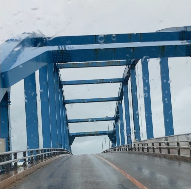 橋を渡った先で、4月9日に行われる石垣島トライアスロンの会場設営をしていました。レース当日がこんな雨だと大変だなぁと思います。
