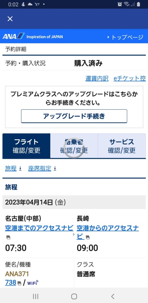 トラさん達は金曜日にANAでセントレアから長崎へ行く予定にしていました。スーパーバリューセールで予約した安い運賃です。
