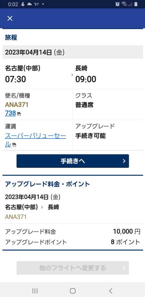 一方、国内線は2日前の午前0時からアップグレードが可能になります。空席があればの話しですが。