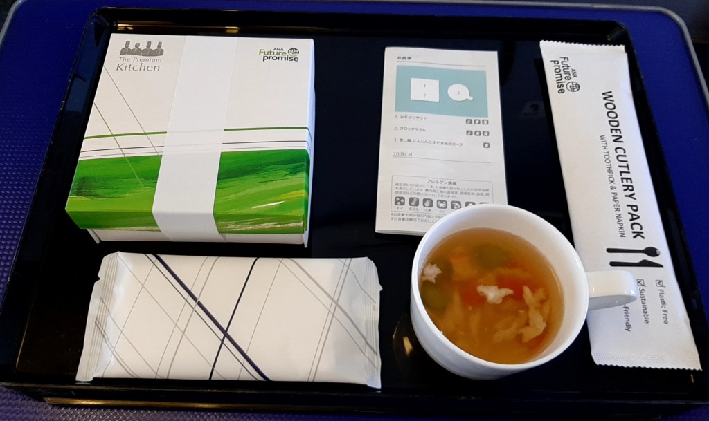 ANA国内線のプレミアムシートは昨年の石垣便以来です。石垣便は結構立派な食事が出たので、今朝は家では朝食を摂らずに出てきました。