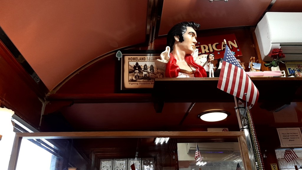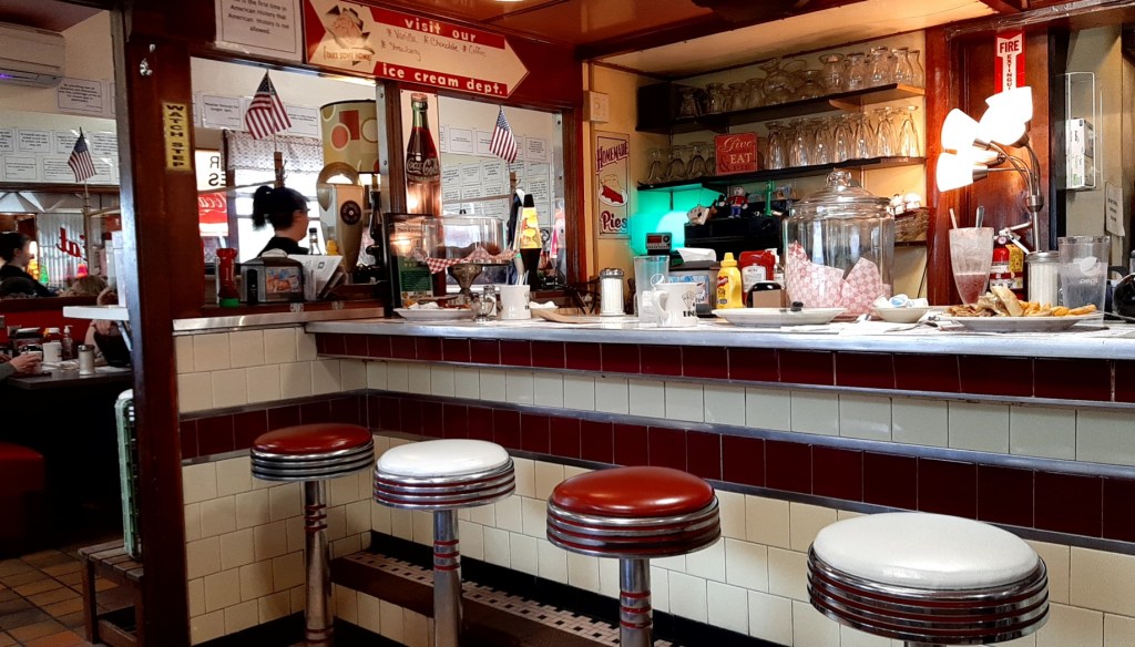 DINERという1952年開業の典型的なアメリカンスタイルのレストランです。平日の朝から客足も途絶えず回転し、ほぼ満席状態が続いています。老いも若きもいるのが不思議です。