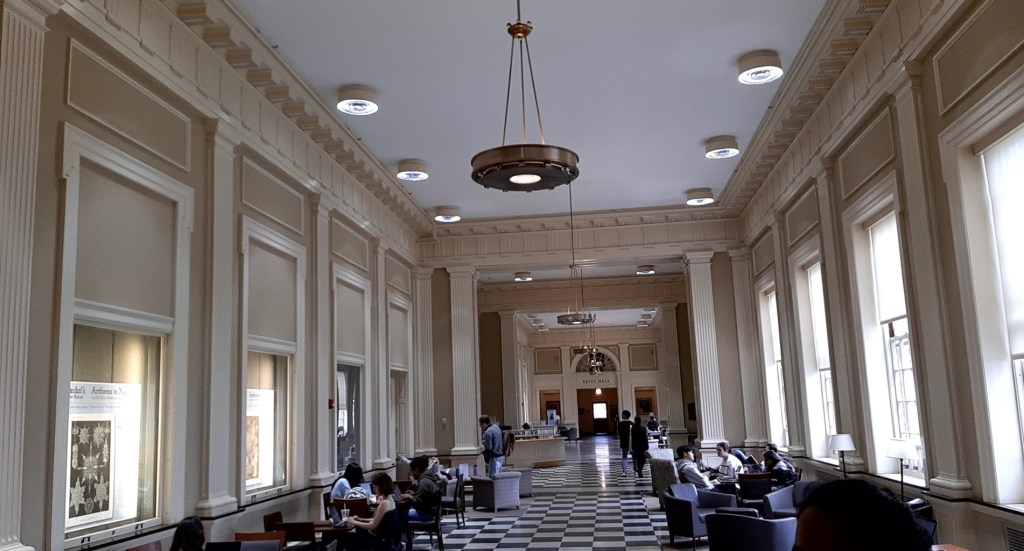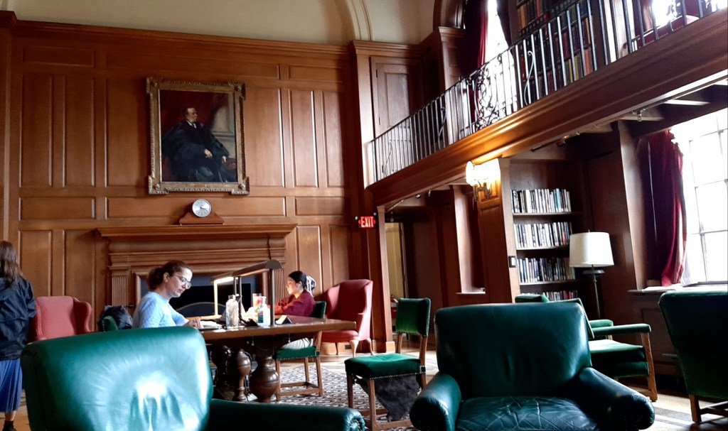 その後、ダートマス大学の構内を見学することになりました。古い立派なホールや図書館など、学生達は様々なところで自由に勉強していました。アカデミックですね。