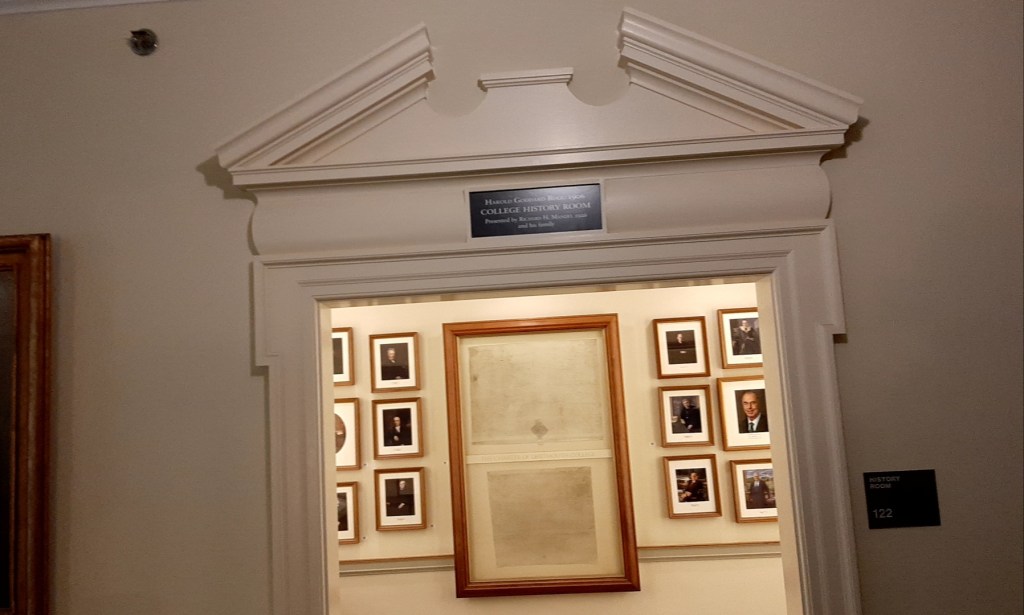 また、COLLEGE HISTORY ROOM というのがありました。ダートマス大学は英語表記ではDARTMOUTH COLLEGEです。大学院がいくつもあるのでUNIVERSITY になぜ変えないのかと思いますが、ニューハンプシャー州政府との間で一悶着あったようです。学部は4年制のリベラルアーツカレッジのため、誇りを持ってCOLLEGE を貫いているそうです。