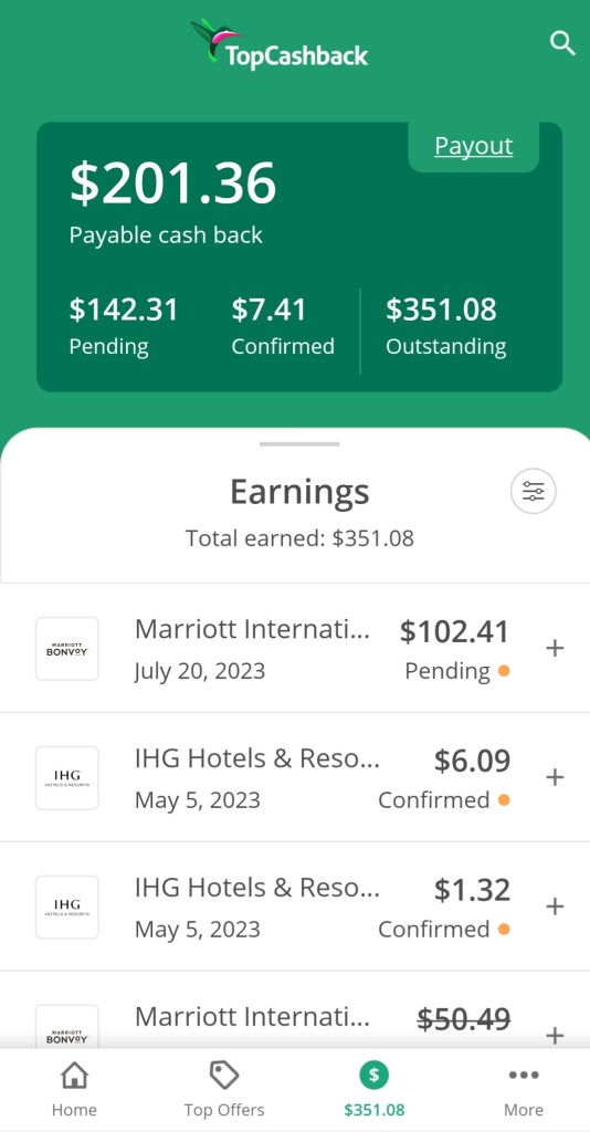 トラさんもMARRIOTT系のホテルを予約する時はTopCashbackというポイントサイトを使っており、そのCASHBACKがPayPalの口座を通して引き出せます。