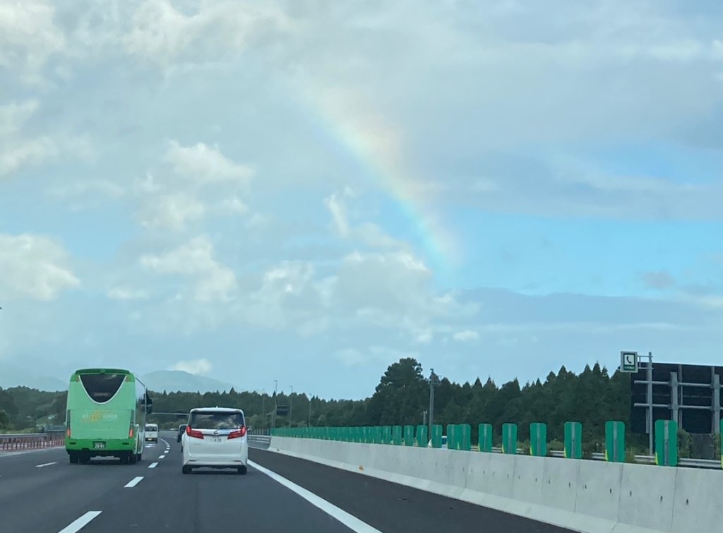 断続的に渋滞が発生しており、結局目的地に着いたのは13時15分頃です。途中で虹が見える所がありました。