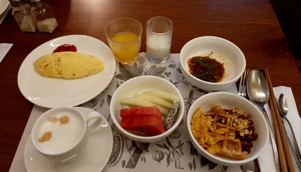 今朝もホテル1階のレストランでブッフェスタイルの朝食です。このお店、植物がたくさん飾られていると思えば、名前も「botanica+co」でした。