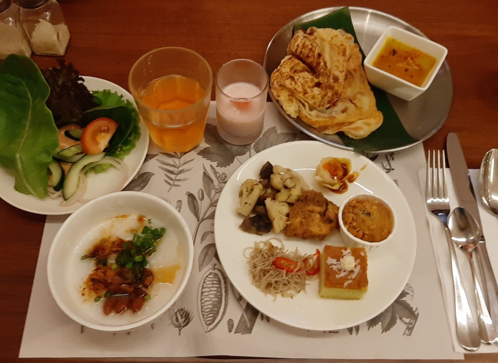 ブッフェスタイルですが、料理の内容も昨日とはかなり違っています。トムヤンクンを注文しようと思いましたが、今日は麺類はなく、マレーシアスタイルのナンがありました。