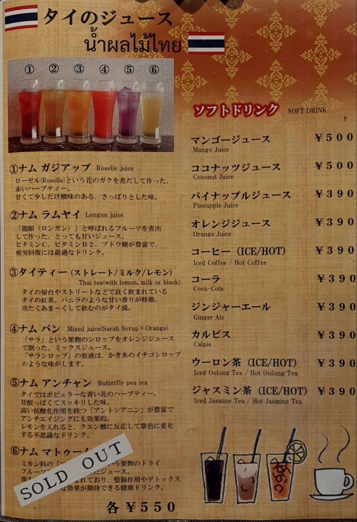 12月にはバンコクに行く予定なので、現地のタイ料理とタイドリンクを注文できるようにしておきたいと思います。