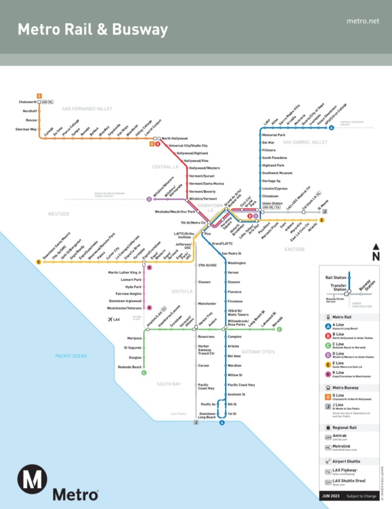 また、安さを追求するならメトロ(地下鉄Subwayと地上線Railが混在)を利用する方法だとLAX から一番近いメトロ駅まで無料バスがあるので、$1.75で行くことができます。