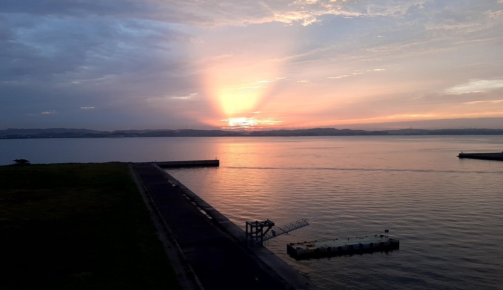 ちょうど日の出の時間帯です。この季節はお部屋から見れるのがいいです。