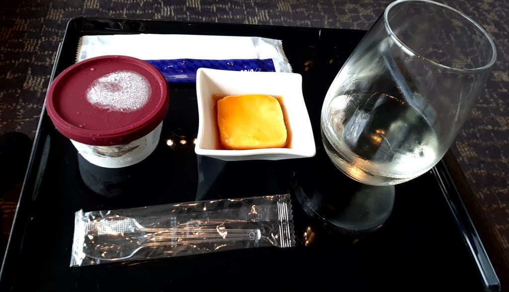 最後にはANAのSUITE LOUNGE にも行き、プリンにハーゲンダッツアイスクリームと日本酒をいただきました。日本酒は「酒造りの神様」の異名を持つ、農口尚彦研究所の「山廃五百万石」。なるほど!と唸ってしまいました。