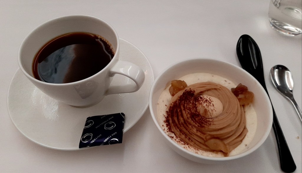 最後にデザートの「クレーム ド マロン」とコーヒーが来ました。こちらは素直に美味しくいただきました。