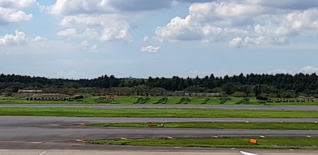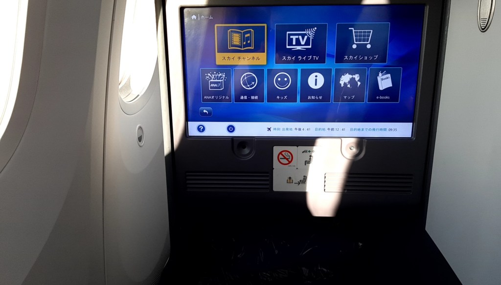 ANAのパイロットは延々と機内放送を続けていました。向かい風で思うように進まず 15分の遅延でした。