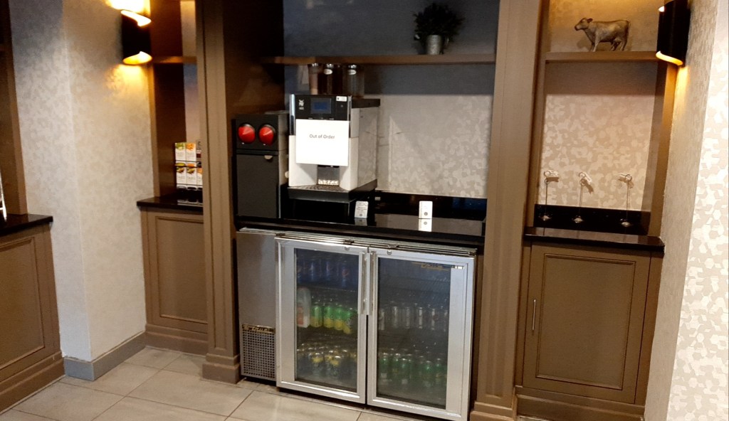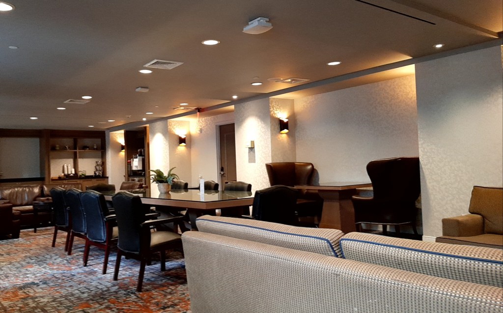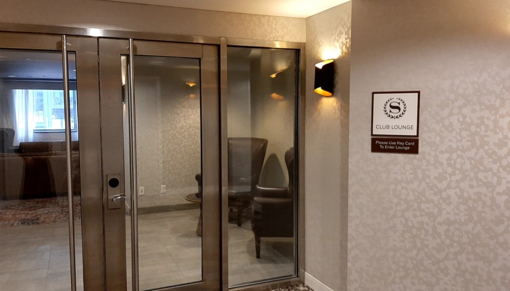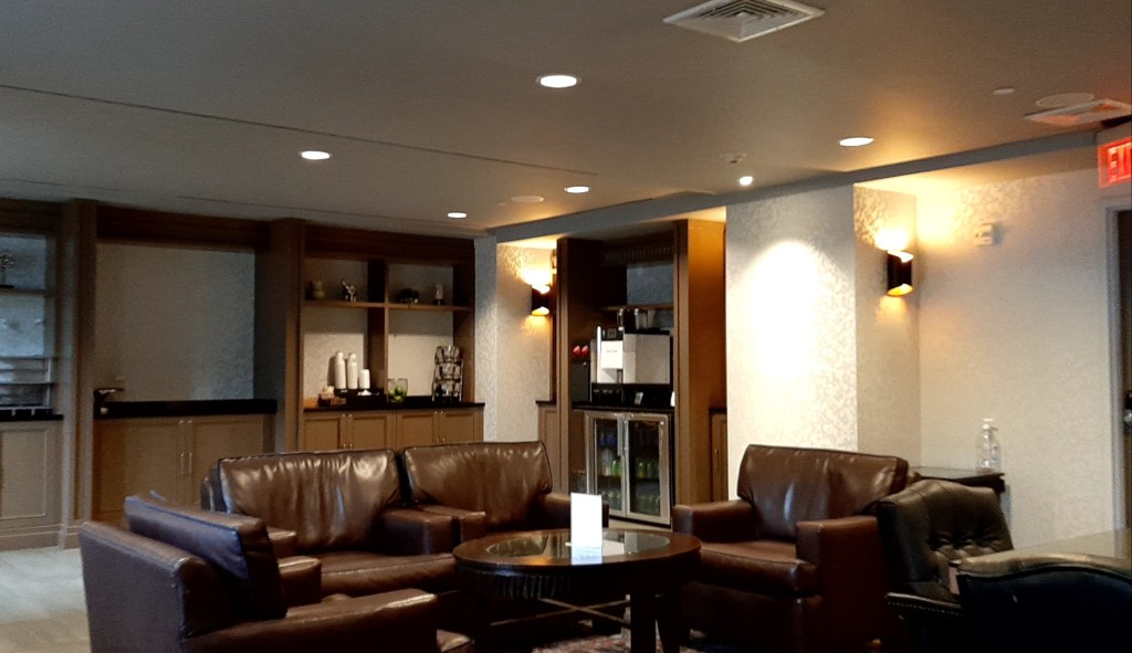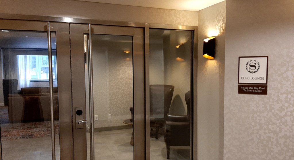 7階へ移動し、ラウンジへ入ります。ドリンクの希望を聞かれ、スパークリングワインとスパークリングウォーターをリクエストしました。